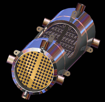 outer shell, Mild steel 8 point mounting lugs and internal copper shell heat exchange tubes.